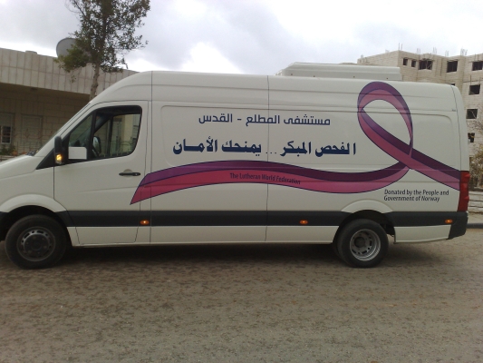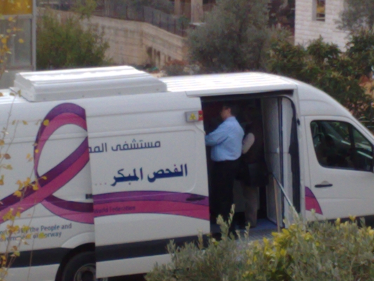 Augusta Victoria Hospital with the Aid of the Norwegian government procured a Mobile Mammo Van. This was a challenging project completed by Intermed and tailor made to fit eh hospital needed. The Van includes a LORAD MI-V Mammography Unit with a Kodak DV850 CR scanner and a Pie-Medical Aquilla Ultrasound Unit. The Van was custom made by Intermed.